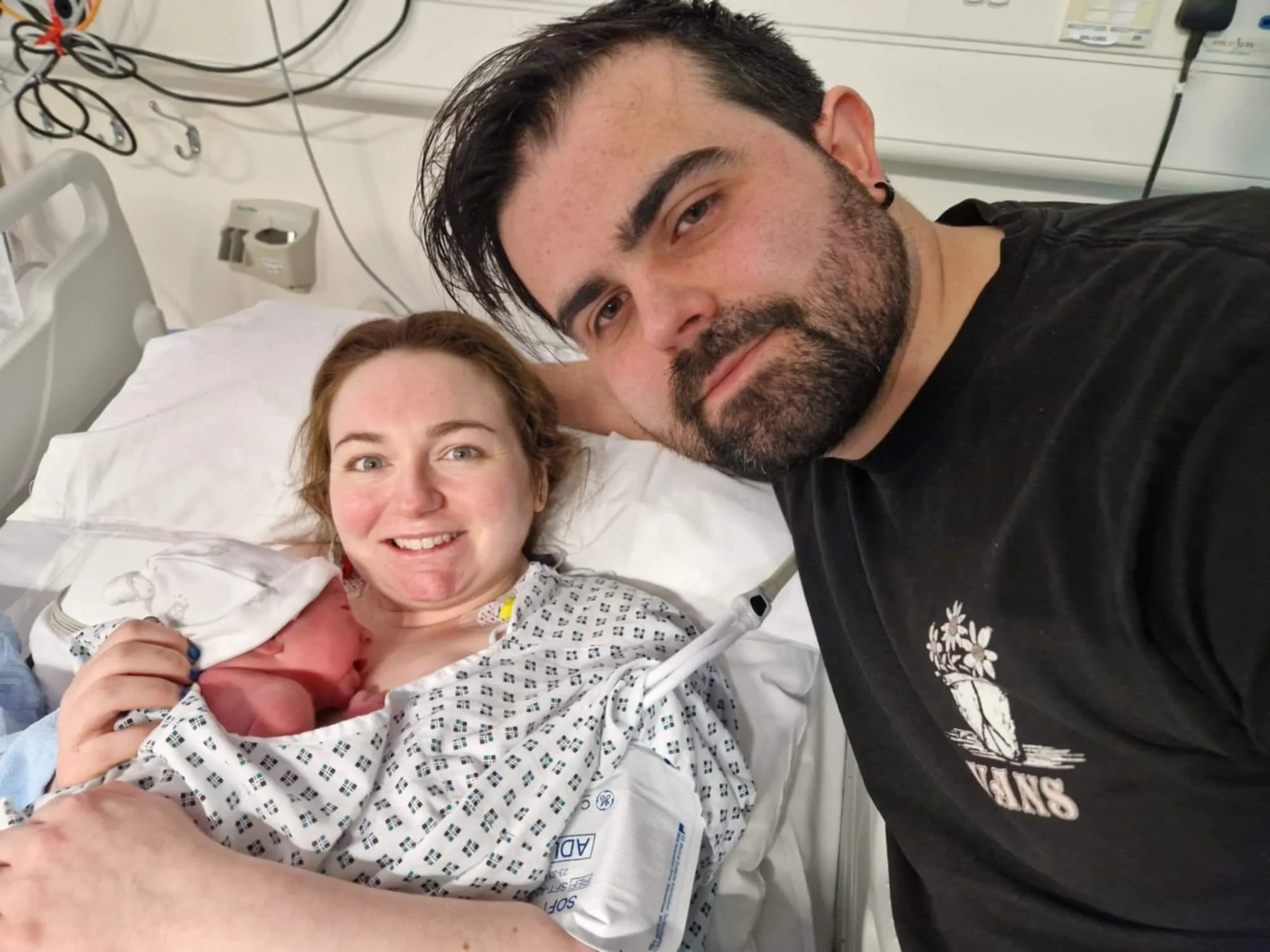 Megan meeting her baby boy Reuben for the first time in the CUMH theatre.